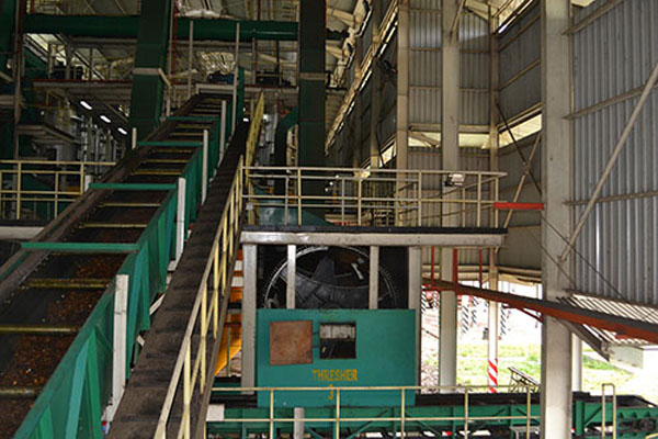 After sterilization, operators send the FFB to rotary drum threshers to separate the sterilized fruits from the bunch stalks. As a result of this process, residues such as empty fruit bunches (EFB) are generated, which typically contain moisture. Since it maintains soil moisture, EFB can serve as an organic fertilizer and soil conditioner. However, to achieve lower moisture content in the EFB, some mills employ EFB pressing techniques. This allows it to be used as biomass fuel in suitable boiler systems for steam/electricity production.