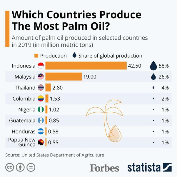 Indonesia is the largest palm oil producing country in the world. According to United States Department of Agriculture data in 2019 that around 58% of world’s palm oil comes from Indonesia.